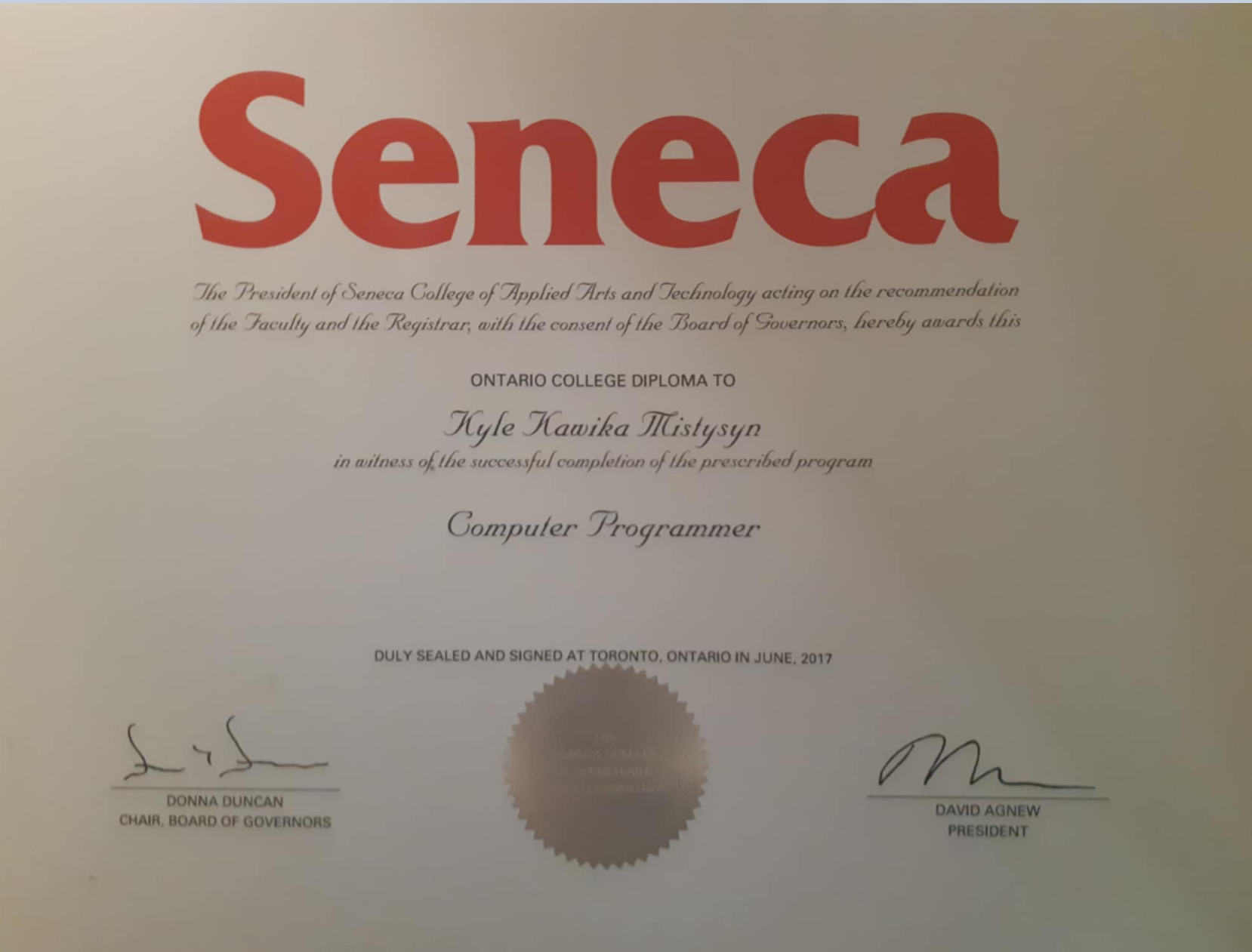I took a two year course on computer programming at Seneca. This taught me a wide array of coding languages and life skills.Riverdale C.I. - Completed High School